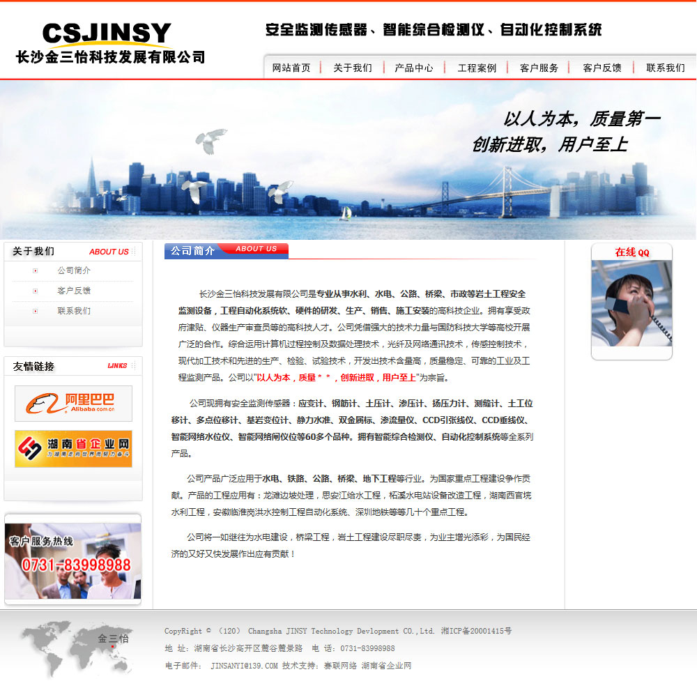 長沙金三怡科技發(fā)展有限公司是專業(yè)從事水利、水電、公路、橋梁、市政等巖土工程安全監(jiān)測設(shè)備,工程自動(dòng)化系統(tǒng)軟、硬件的研發(fā)、生產(chǎn)、銷售、施工安裝的高科技企業(yè)。擁有享受政府津貼、儀器生產(chǎn)審查員等的高科技人才。公司憑借強(qiáng)大的技術(shù)力量與國防科技大學(xué)等高校開展廣泛的合作。綜合運(yùn)用計(jì)算機(jī)過程控制及數(shù)據(jù)處理技術(shù),光纖及網(wǎng)絡(luò)通訊技術(shù),傳感控制技術(shù),現(xiàn)代加工技術(shù)和先進(jìn)的生產(chǎn)、檢驗(yàn)、試驗(yàn)技術(shù),開發(fā)出技術(shù)含量高,質(zhì)量穩(wěn)定、可靠的工業(yè)及工程監(jiān)測產(chǎn)品。公司以