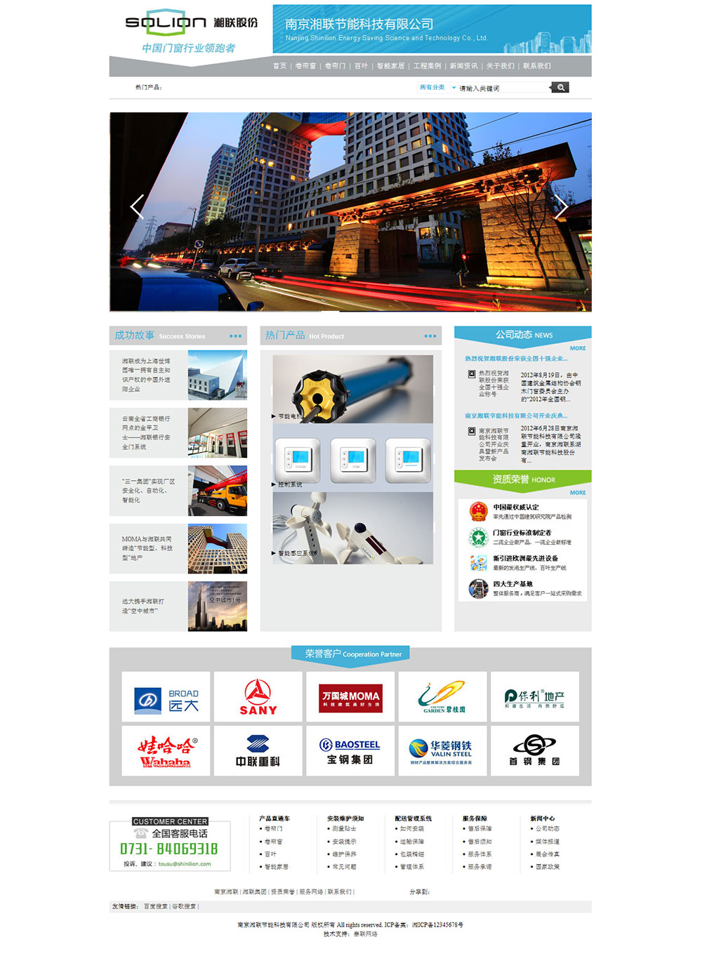 南京湘聯(lián)節(jié)能科技有限公司是一家從事戶外遮陽節(jié)能卷簾門窗、管狀電機與相關(guān)控制系統(tǒng)的高科技民營企業(yè)??偛孔溆陂L沙國家經(jīng)濟技術(shù)開發(fā)區(qū),占地面積70多畝,建筑面積50000平方米,是目前國內(nèi)同行業(yè)中**集科研、生產(chǎn)、銷售、服務(wù)于一體的大型綜合性高科技民營企業(yè)。