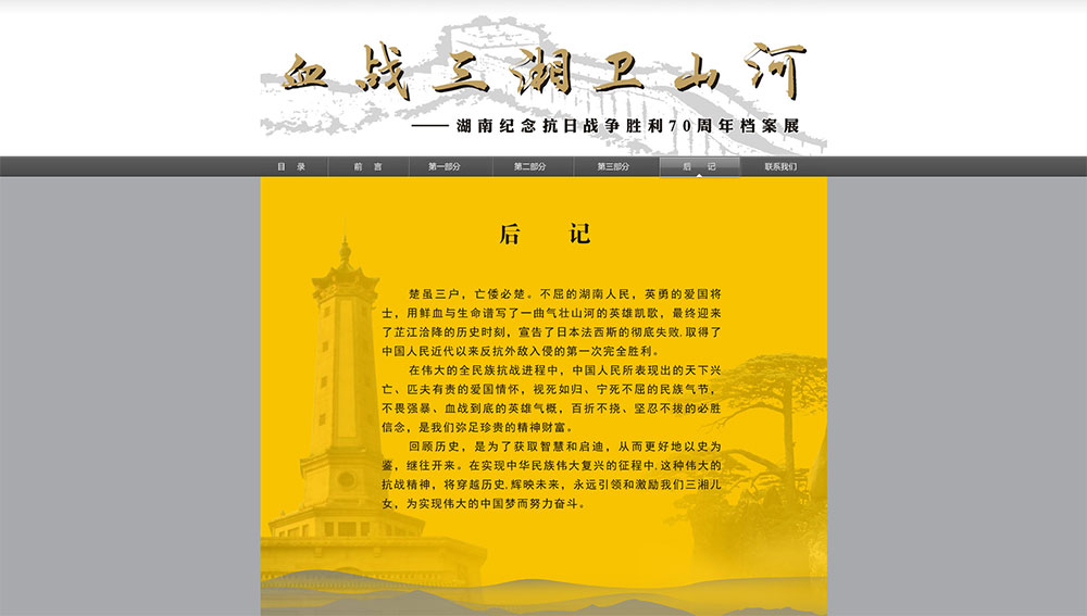 血戰(zhàn)三湘衛(wèi)山河 - 湖南紀(jì)念抗日戰(zhàn)爭(zhēng)勝利70周年檔案展