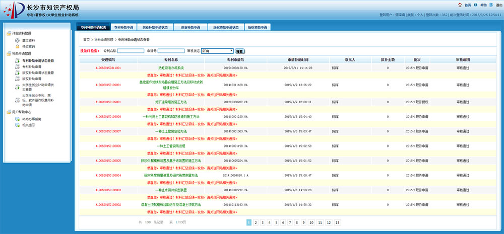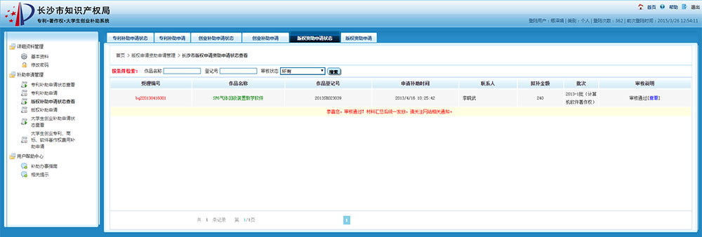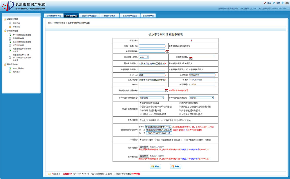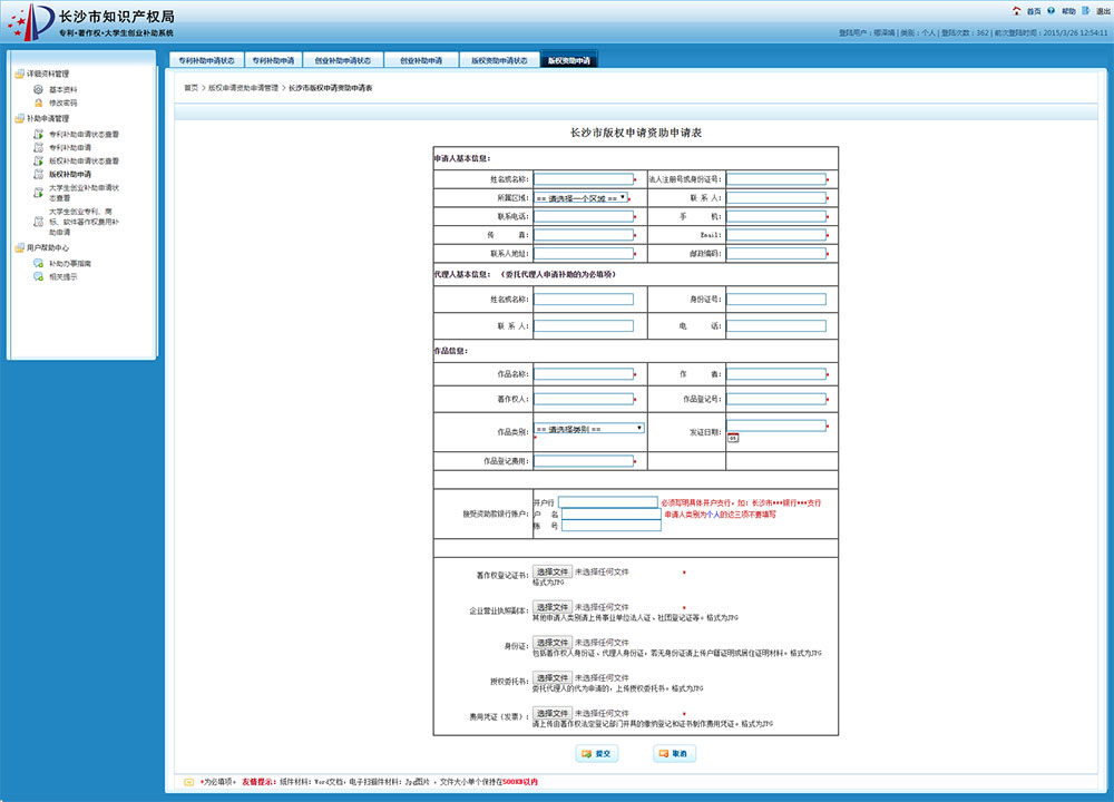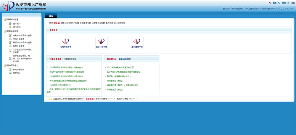 長沙市知識產(chǎn)權(quán)局 專利申請補(bǔ)助 大學(xué)生創(chuàng)業(yè)補(bǔ)助 著作權(quán)登記補(bǔ)助 網(wǎng)上申報系統(tǒng)